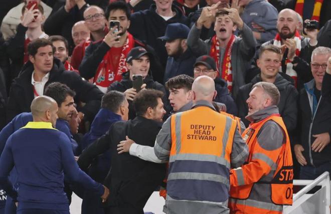 马竞主帅西蒙尼在被绝杀后与利物浦球迷发生冲突,被直红罚下。