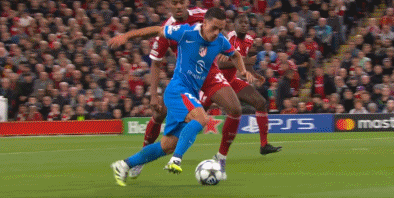 第45+3分钟,拉斯帕多里推进横传,略伦特捅射破门,马竞1-2扳回一城!